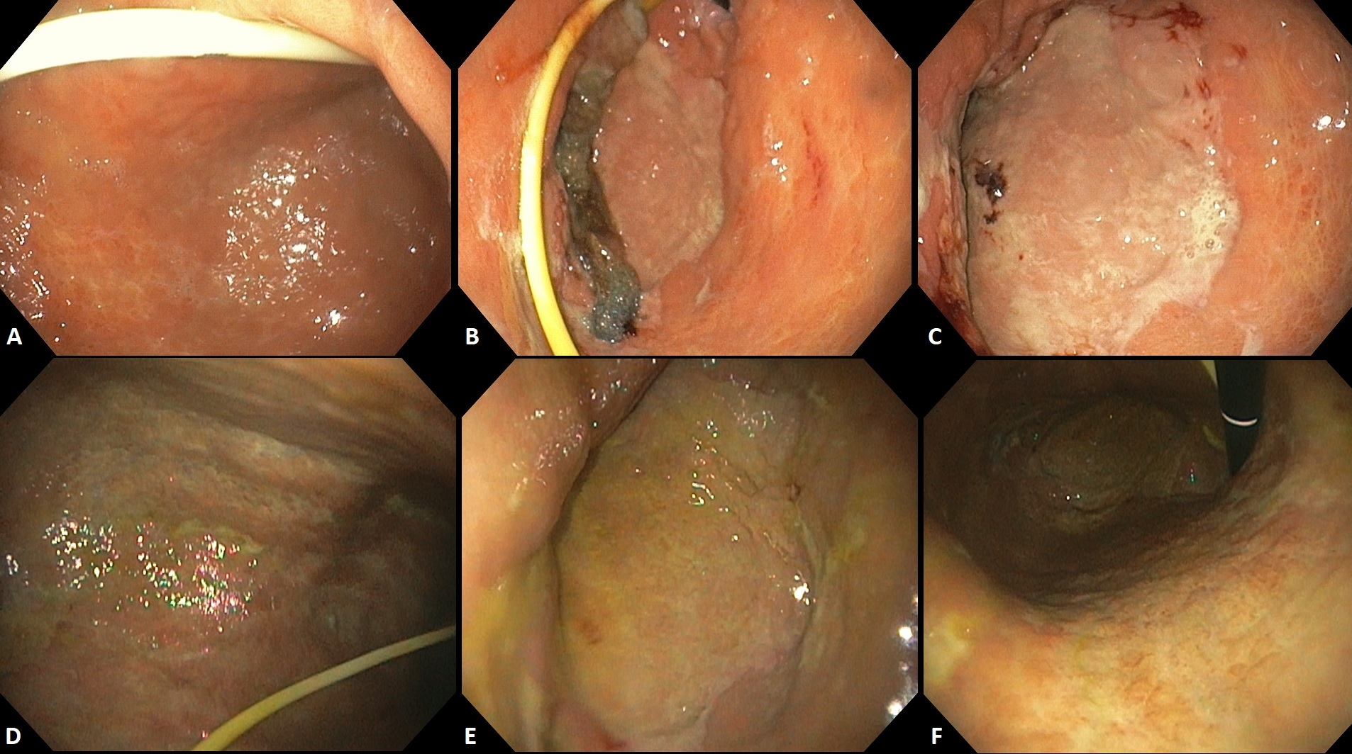 - Dos nuevas endoscopias mostraron hallazgos similares, sin posibilidad de terapia endoscópica (polvo hemostático no disponible en el centro) (figura 1);
