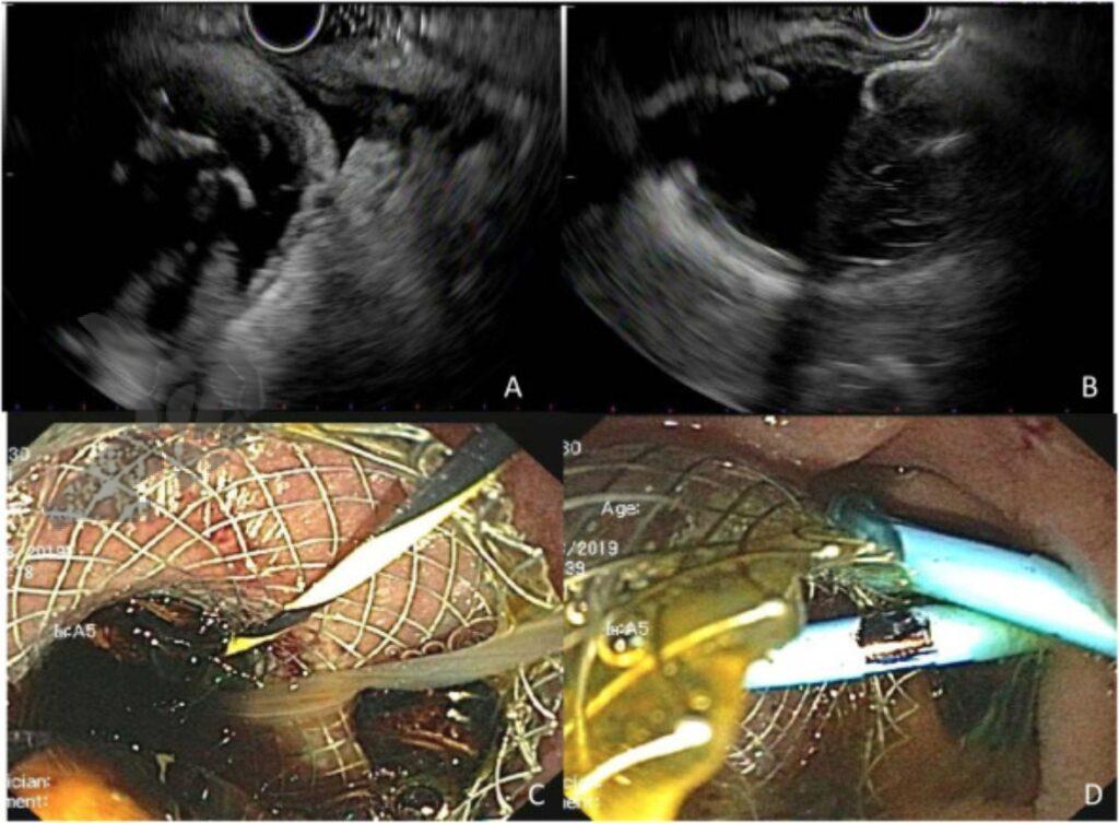 As principais técnicas de drenagem incluem o uso de stents metálicos autoexpansíveis, com destaque para a utilização do stent metálico com aposição de lúmens (LAMS) – clique aqui para saber mais sobre LAMS. Em casos que envolvam dificuldade de posicionamento, vesícula fibrótica ou presença de drenos percutâneos que dificultem a visualização da vesícula, o uso de fio guia pode trazer maior segurança ao procedimento.