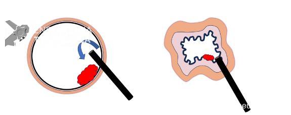Lesões que estão em localizações difíceis, como em angulações, quando aspiramos o lúmen, estas tendem a se aproximar do aparelho, facilitando a dissecção (FIGURA 4).