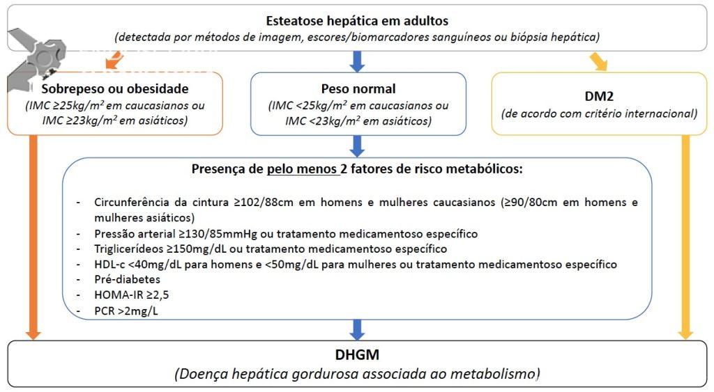 Por outro lado, paciente com esteatose hepática que previamente não eram classificados como DHGNA devido o consumo etílico significativo, outras doenças hepáticas ou causas secundárias de esteatose hepática podem ser diagnosticados como DHGM.