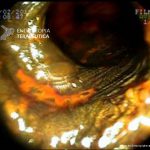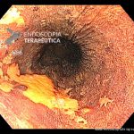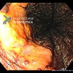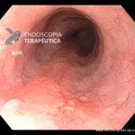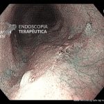 - Lesão plana esofágica com alteração de cor. Ao NBI apresenta perda da trama vascular e coloração escurecida