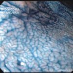 A utilização da cromoscopia com índico-carmim pode ajudar, realçando as alterações da mucosa.