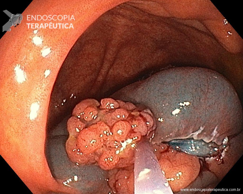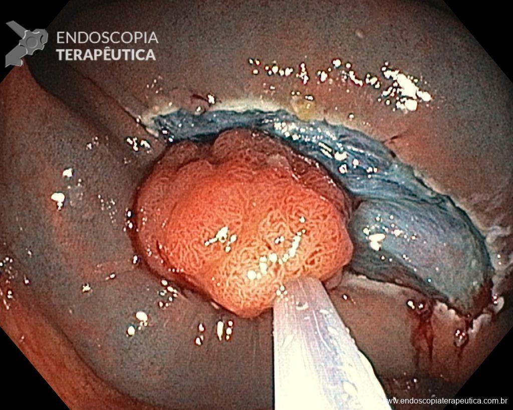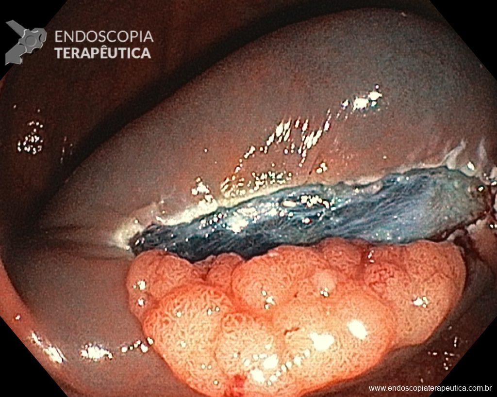 Diante do exposto, para o caso exemplificado acima, foi optado pela ressecção através da técnica de EPMR, tanto pelo tipo morfológico (LST-G-H) e características da superfície da lesão (JNET 2A), como também pela localização (ceco), que apresenta um risco maior de complicações.