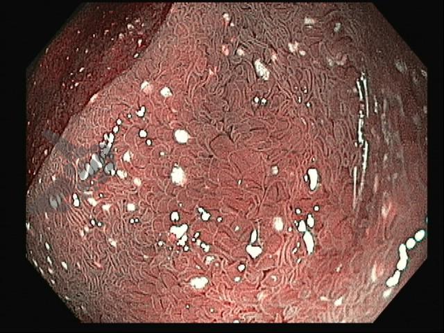 Paciente do sexo feminino, 47 anos, com história de artralgia migratória intermitente há 1 ano, queixa-se de diarreia crônica, dor abdominal e perda de peso não intencional há 3 meses. Na investigação, a Endoscopia Digestiva Alta evidenciou mucosa duodenal com áreas de vilosidades edemaciadas e presença de múltiplas placas esbranquiçadas elevadas. A avaliação histopatológica das biópsias duodenais demonstrou expansão da lâmina própria por macrófagos espumosos positivos para a coloração de Ácido Periódico de Schiff (PAS) e resistentes à diástase. A coloração de Ziehl-Neelsen resultou negativa.