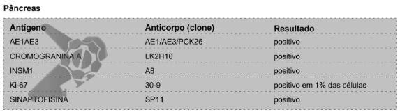 - Imuno-histoquímica (marcadores na figura 5): Quadro morfológico e perfil de imuno-expressão compatíveis com TUMOR NEUROENDÓCRINO BEM DIFERENCIADO GRAU 1 (NET G1).